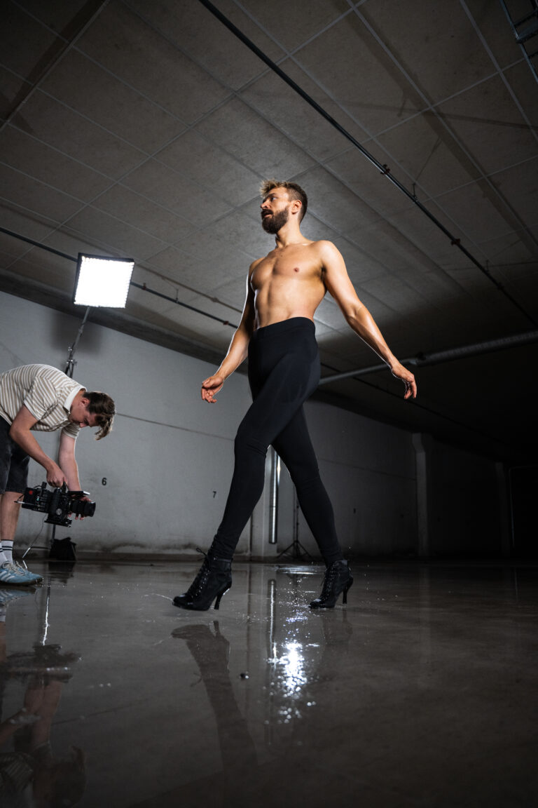 Videon, inspelad i hans pappas garage, speglar just det, och Joakin träder in i höga klackar.