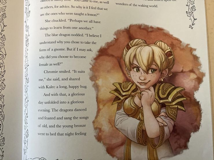 Därför har fans under en längre tid undrat varför Chromie är en drake med manlig könsidentitet, men valt att anta formen som kvinnlig gnome, något som antologin nu avslöjar. Efter att Chromie i en ritual bestämmer sig för att gestaltas som kvinnlig gnome, får hon frågan varför och svarar helt enkelt: