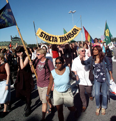 Fredagens QFM-marsch samlade ca 500 personer som gick från Bofils Båge till Tanto. En bred samling av feminister, S/M-flator, transor och homosar.