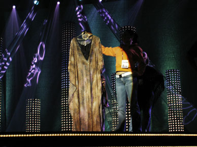 Men jag och mina skojfriska flatkollegor rös när scenljuset testades på Shirleys genomskinliga etnokaftan till klänning. Vad ska hon ha på sig?