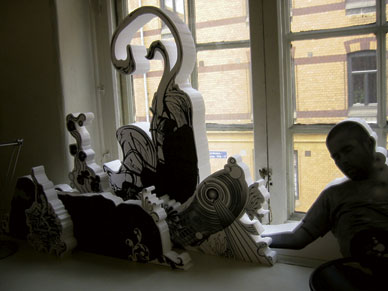 På vernissagen kommer dessutom det holländska Art-Electro-Pop bandet Zeigeist att spela live inifrån galleriets andra fönster (20.30 ikväll), även detta kommer endast att kunna ses från gatan.
